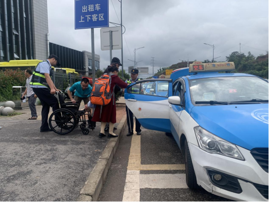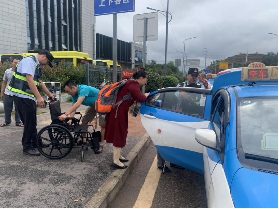 发表时间:2025-09-29 12:43来源:潼南所 在潼南区火车站的人流中,有这样一群身影,他们不仅是交通秩序的守护者,更是群众出行的贴心人。9月28日,一场发生在出租车上下客区的暖心帮扶,让“执法为民”的初心在细节里闪闪发光。 现场直击:轮椅旁的“暖心护航”