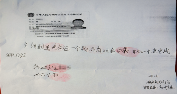 发表时间:2025-12-01 11:50来源:国际 2025年11月30日18:00左右,中日公司驾驶员方师傅驾驶我司渝AD3675号出租车在罗马假日附近接到两名乘客,上车后其中一名乘客将随身携带的一个黑色小包放在了后排座位中间,下车的时候忘记带走遗失在了车上。 驾驶员方师傅发现包后马上打开清理包内物品,试图找到失主联系方式,竟发现里面有一沓大额现金,当时丝毫没有犹豫,心里只有一个念头:“这么多现金,失主肯定急坏了,我得赶紧还回去”,随后主动将失物交回了公司。 当天晚上,失主王先生得知失物被妥善保管,一颗悬着的心总算落了地。当晚23点后,失主来到公司,经公司工作人员核实身份信息后,王先生顺利领回了丢失的包及现金,并表达了对驾驶员方师傅的敬意与感激,高度赞扬拾金不昧的高尚品德。 拾金不昧的行为看似平凡,却是以小善传递大爱,这位平凡的出租车司机,以他的实际行动,为社会传递了正能量,为行业赢得了荣誉。