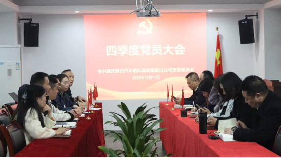 发表时间:2025-12-18 10:19来源:假日 时值岁末,冬意渐浓,一场凝聚共识、擘画未来的党组织生活,在重庆假日汽车党支部热烈展开。第四季度党员大会如期举行,这既是一场庄严的组织仪式,更是一次思想的再洗礼、初心的再砥砺、使命的再出发。本次大会由刘敬委员主持,刘熙书记在大会上结合二十届四中全会精神及“十四五”规划内容,为全体党员作了专题党课宣讲。支部全体党员、预备党员及入党积极分子参加会议。